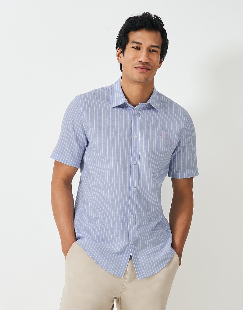 Linen Blend Classic-Fit Shirt in Blue Stripe