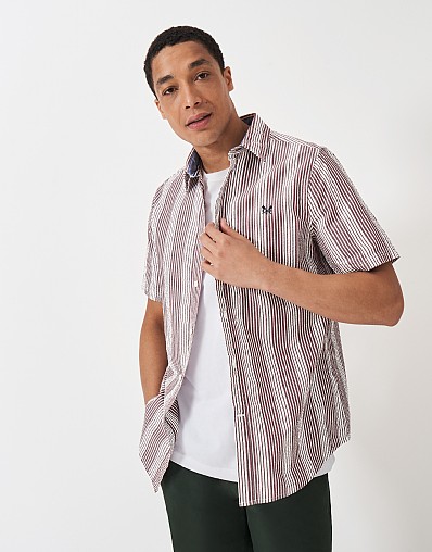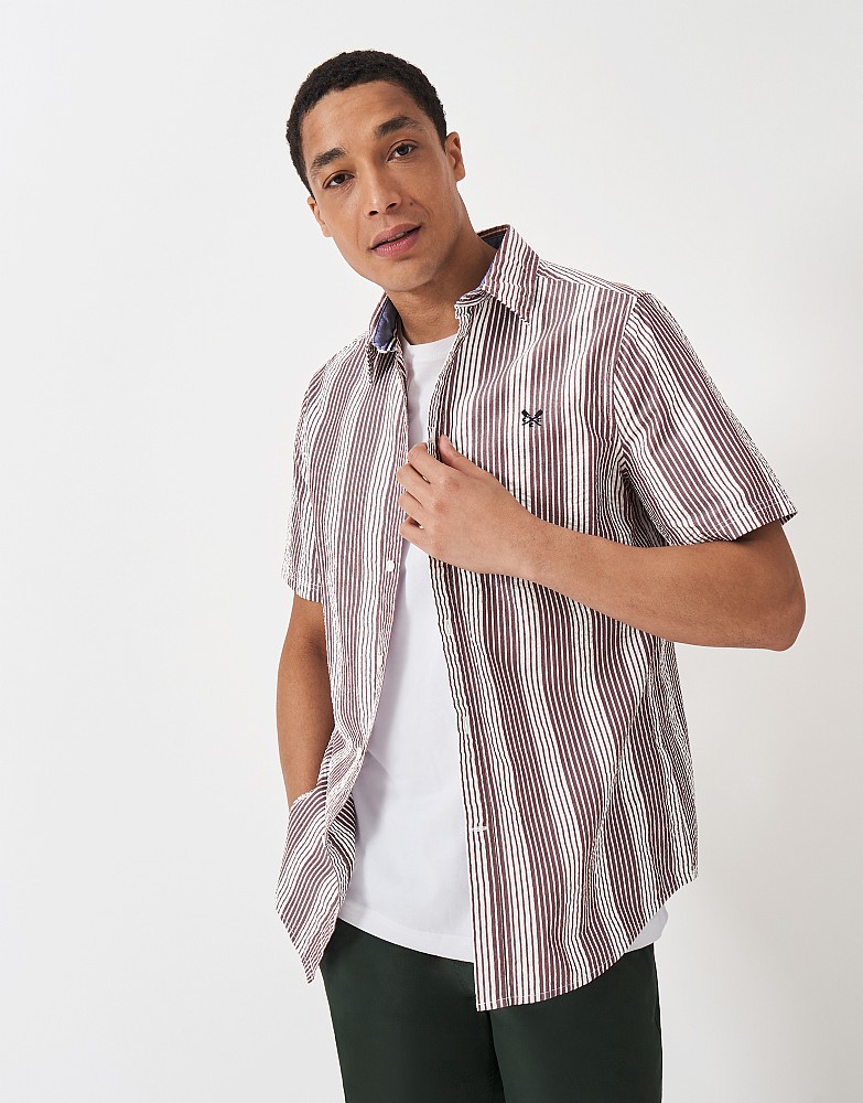 Short Sleeve Multi Stripe Seersucker Shirt in Brown & White