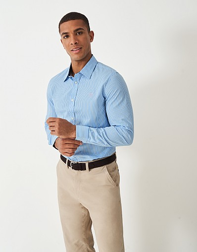 Slim Fit Cotton Poplin Shirt in Blue and White Pinstripe