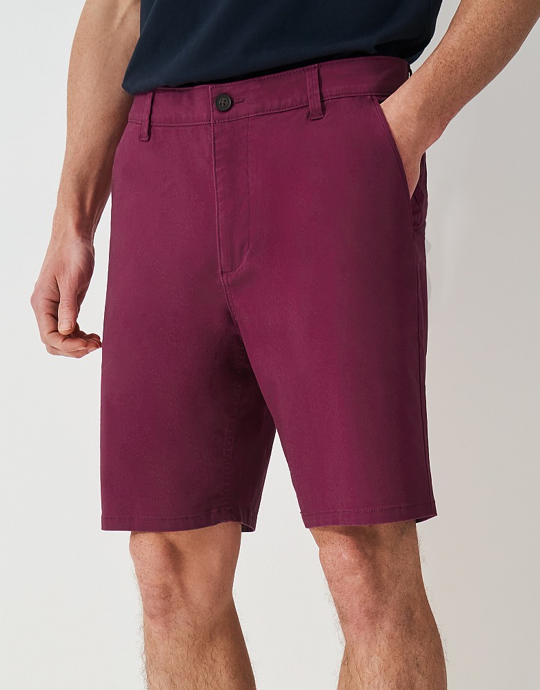 Men's cotton Bermuda-length chino shorts in deep purple. With four pockets, slightly stretchy fabric, and signature brand touches, these summer shorts combine comfort and style, effortlessly. They make the perfect accompaniment to shirts, tees and polos. Just add sunshine.