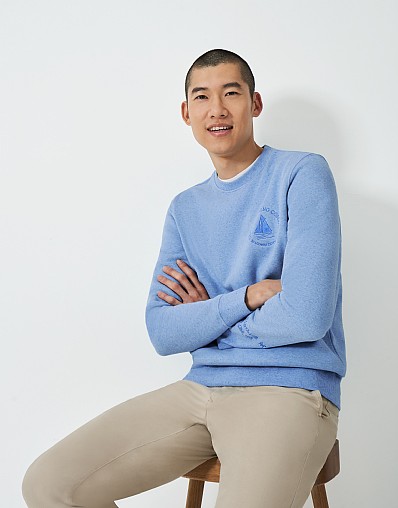 Boat Graphic Crew Neck sweatshirt in Dusk Blue
