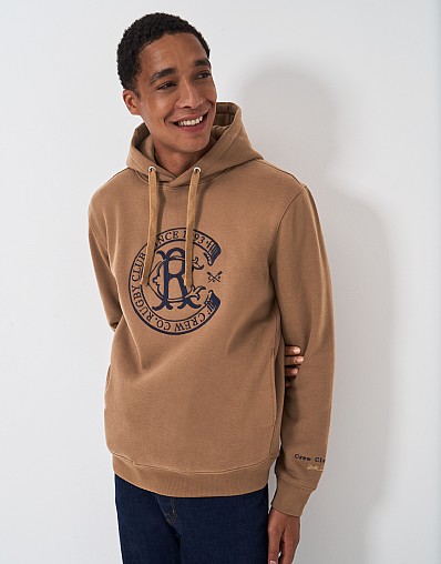 A graphic hoodie in soft brown. With an anchor design embroidered on the chest, we've added a kangaroo pocket and Crew branding stitched on the sleeve. Layer over a tee for a varsity feel.