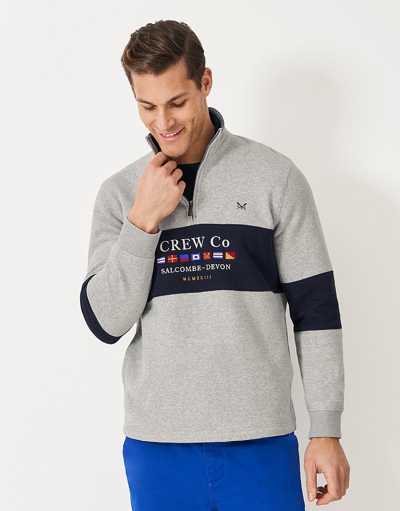 Cut and Sew Embroidered Half Zip Sweatshirt in Grey and Navy