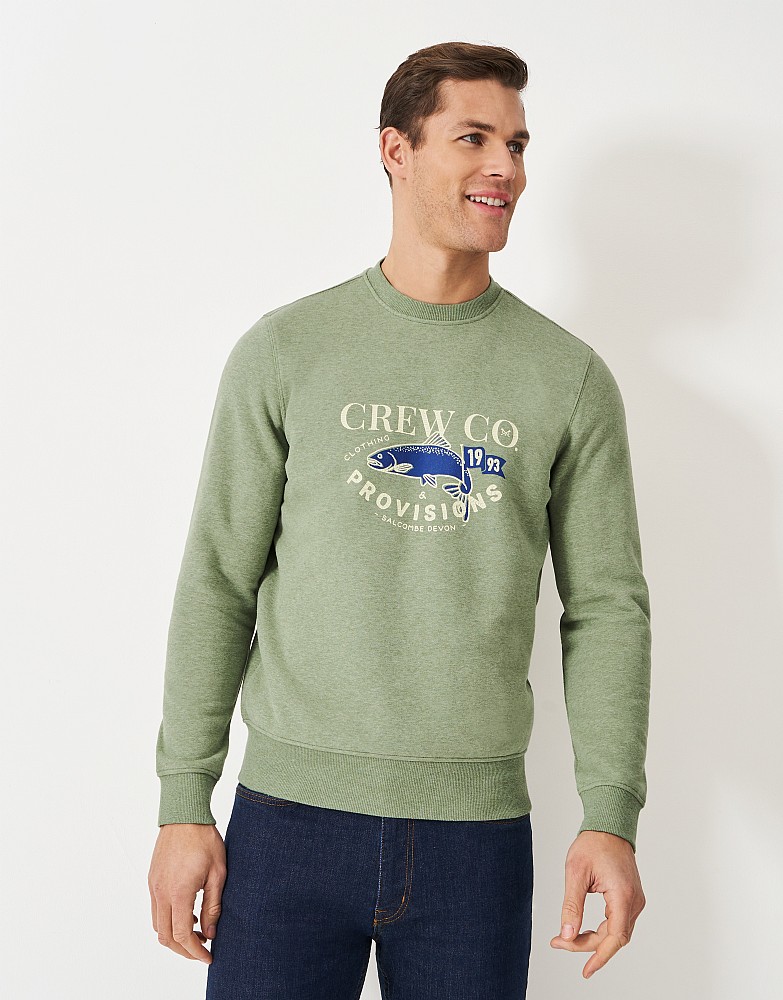 Fish Graphic Crew Neck Sweatshirt in Green Marl