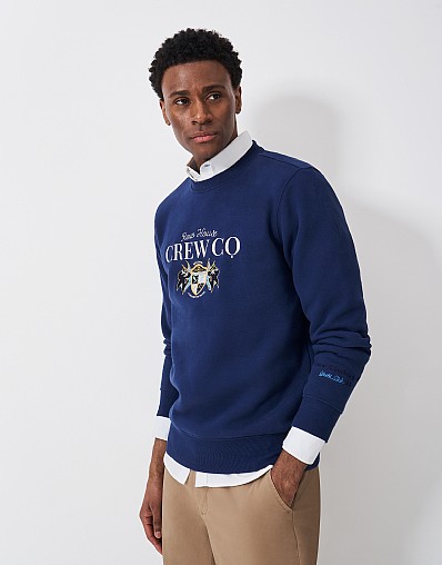 Flag Graphic Crew Neck Sweatshirt in Dark Blue