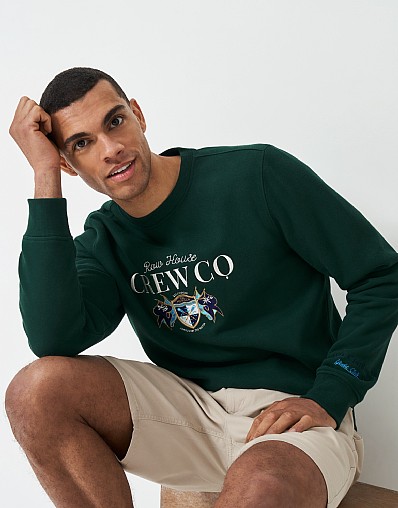 Flag Graphic Crew Neck Sweatshirt in Botanic Green