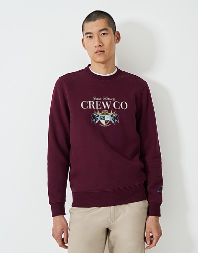 Flag Graphic Crew Neck Sweatshirt in Burgundy