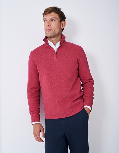 French Rib Half Zip Sweatshirt in Cherry Red