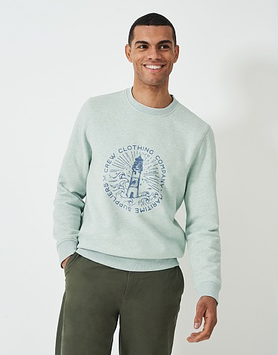Lighthouse Graphic Crew Neck Sweatshirt in Blue