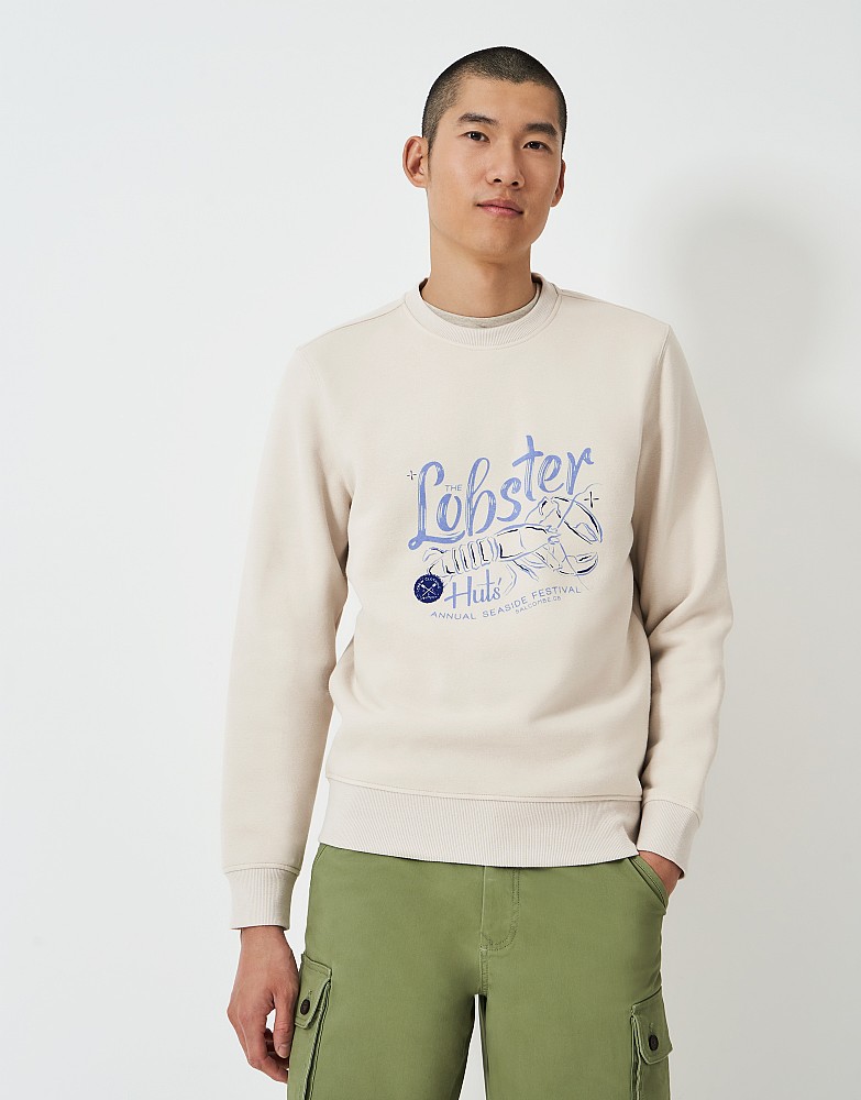 Lobster Graphic Crew Neck Sweatshirt in Beige