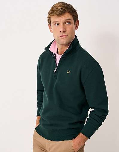 Oversized Cotton-Blend Piqué Half-Zip Sweatshirt in Bottle Green