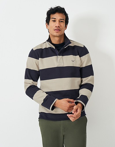 Our Waterside graphic Padstow in navy and off white stripes. A classic style that makes light work of off-duty dressing. We've added a branded zip pull and our crossed oars neatly embroidered on the chest. Pair with jeans and step out in style.