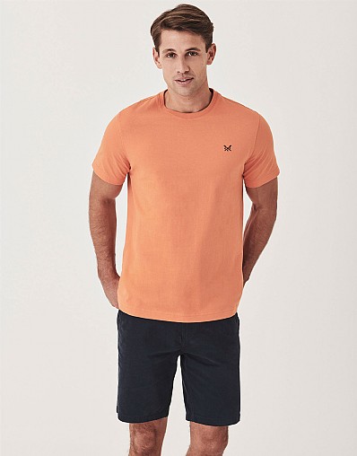 A simple tee in coral. In 100% cotton jersey, peached and gently garment washed for softness, this t-shirt is equally stylish layered under a knit or worn alone. This is all about comfort.