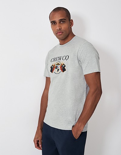 Crew Neck Embroidered Flag T-Shirt in Grey