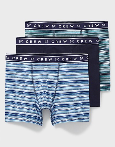 A three pack of boxers in navy fine stripes. These are perfect upgrades to your underwear drawer. We love the Crew branded waistband.