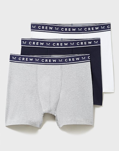 A three pack of boxer shorts in white, navy and grey. These are designed for easy wear with classic Crew branding on the waistband. Add to basket and you’ll have your essentials sorted.