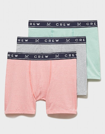 A three pack of boxers in coral, grey and mint green. These are perfect upgrades to your underwear drawer. We love the Crew branded waistband.