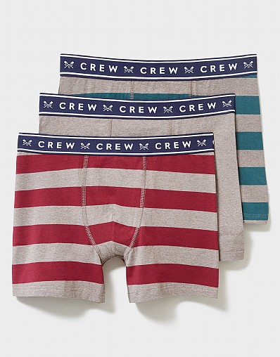 A pack of three boxers in red stripe. Cut from soft stretchy cotton with a Crew branded waistband, these boxers are designed for comfort.