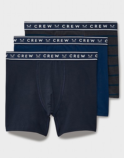3-Pack Jersey Boxers in Blue, Charcoal Marl & Dark Navy Stripe