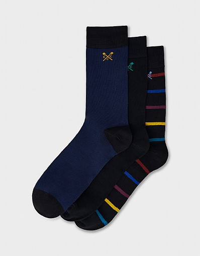 3 Pack Bamboo Socks in Navy, Black and Multi