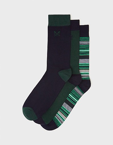 A three pack of socks in green fine stripes. Socks made from bamboo are the best kind of socks. Soft, breathable and hypoallergenic. For every day...