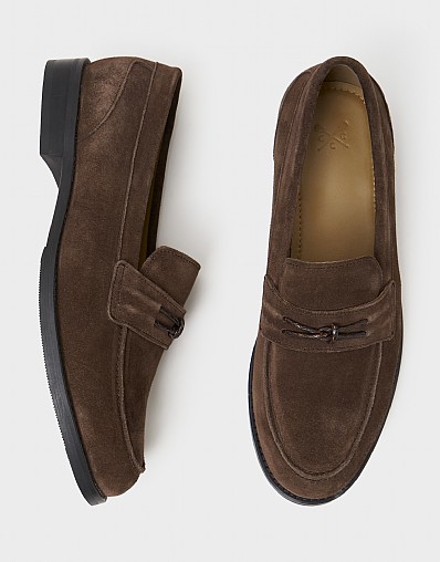 Knot Detail Suede Loafers in Brown