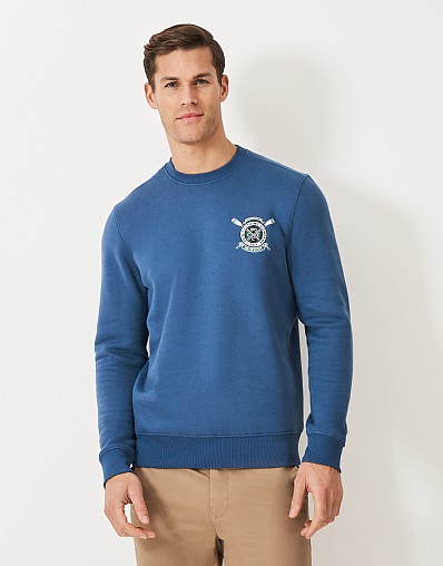 Salcombe Crest Crew Neck Sweatshirt in Riviera Blue