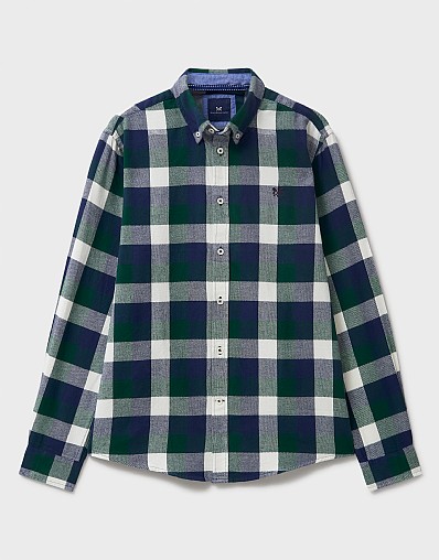 A flannel shirt in navy, green and white check. This supersoft shirt is finished with aa button-down collar and our crossed oars embroidered on the chest. Effortlessly stylish, we love it worn with jeans rolled up at the cuffs.