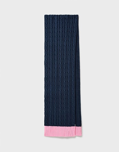 Cable-Knit Scarf in Navy & Pink