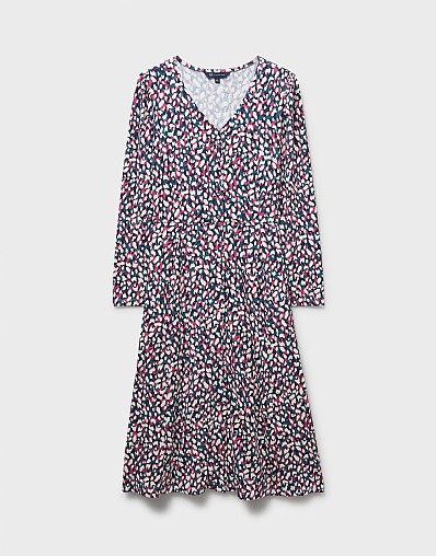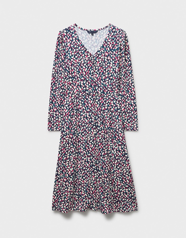 A long sleeve jersey dress in a burgundy floral print. Featuring a flattering v-neckline and comfortable long sleeves. This style is perfect for both the week and the weekend, just add your favourite accessories.
