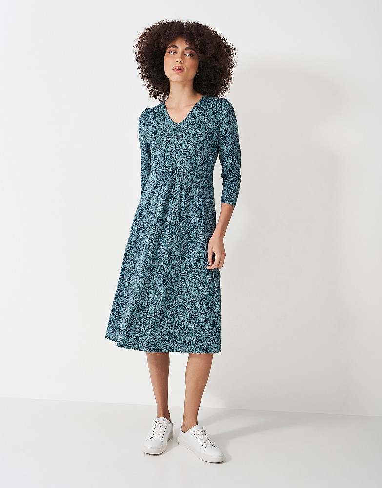 A jersey dress in a pretty floral print. Finished with blouson sleeves with elasticated cuffs and a flattering V-neck, this dress is as stylish as it is comfortable. Wear with tights and boots now, then swap for trainers when the sun decides to shine.