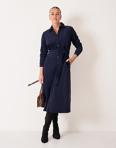 Sienna Midi Cord Shirt Dress in Navy Blue