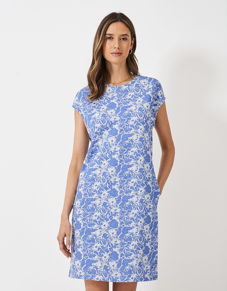 Thea Jersey Short Sleeve Floral Dress in Blue