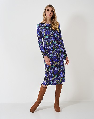 Long Sleeve Tina Tie Front Jersey Dress in Navy Floral