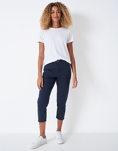 Cropped jeans in heritage navy. These are crafted from cotton and a touch of stretch for a flattering fit. Pair with our popover shirt for a look that will see you from week to weekend in a snap.