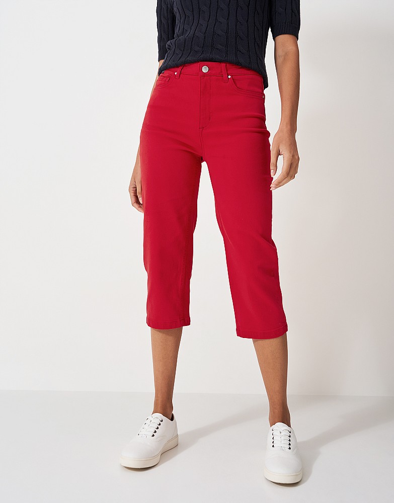 Our Mia cropped jeans in red. These are crafted from cotton and a touch of stretch for a flattering fit. Pair with a boyfriend shirt for a look that will see you from week to weekend in a snap.