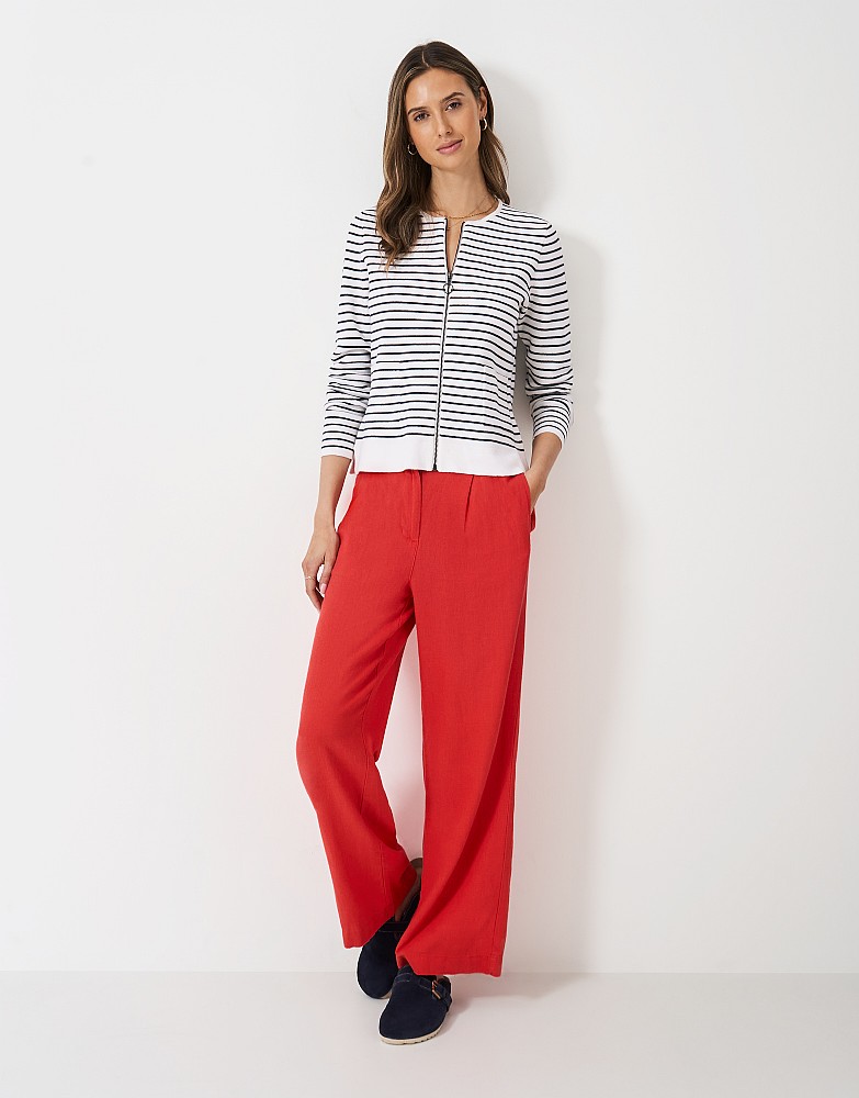 Carrie Knitted-Cotton Bomber in White & Navy Stripe