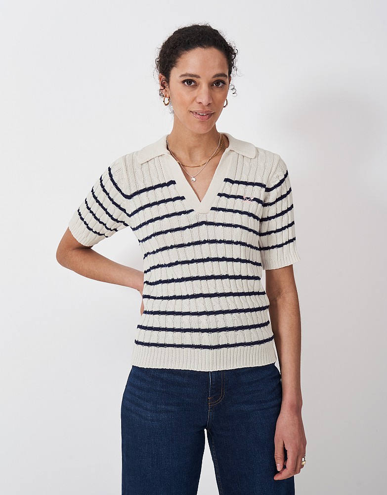 Heritage Collar Knit Top in Blue White Stripe