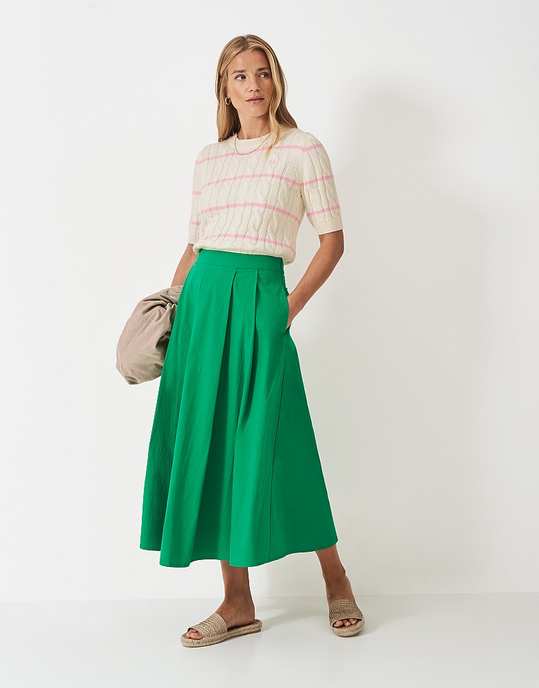 Cable Stripe Knitted T-Shirt in White Pink Stripe