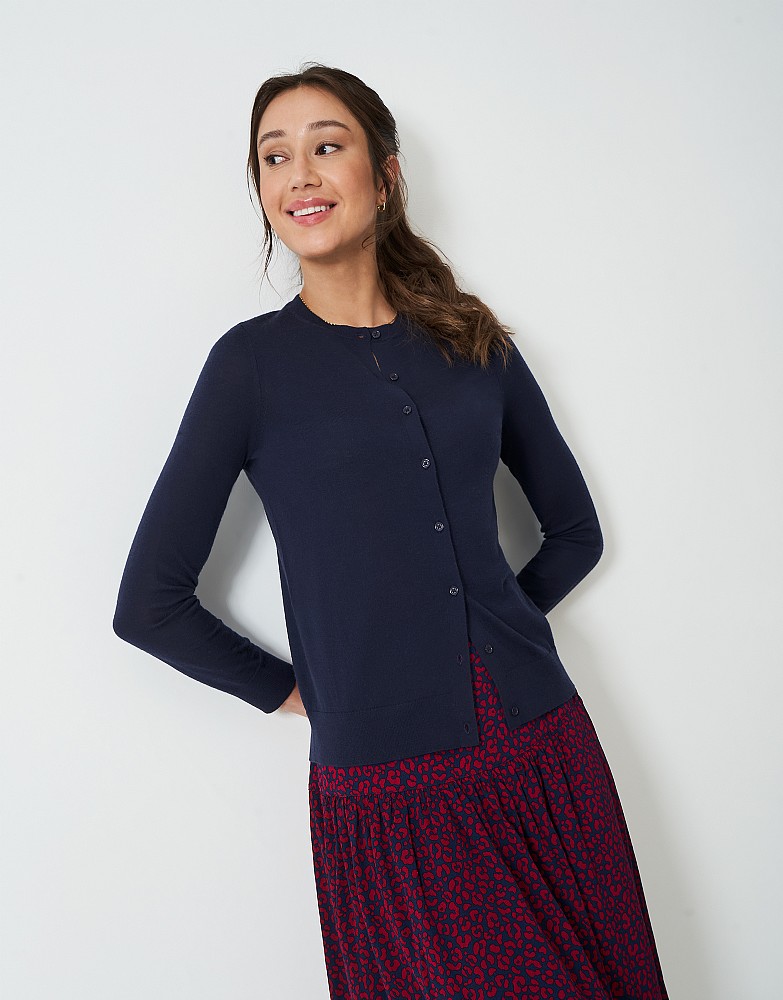 Merino Wool Crew Cardigan in Blue
