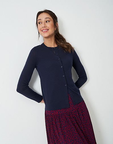 Merino Wool Crew Cardigan in Blue