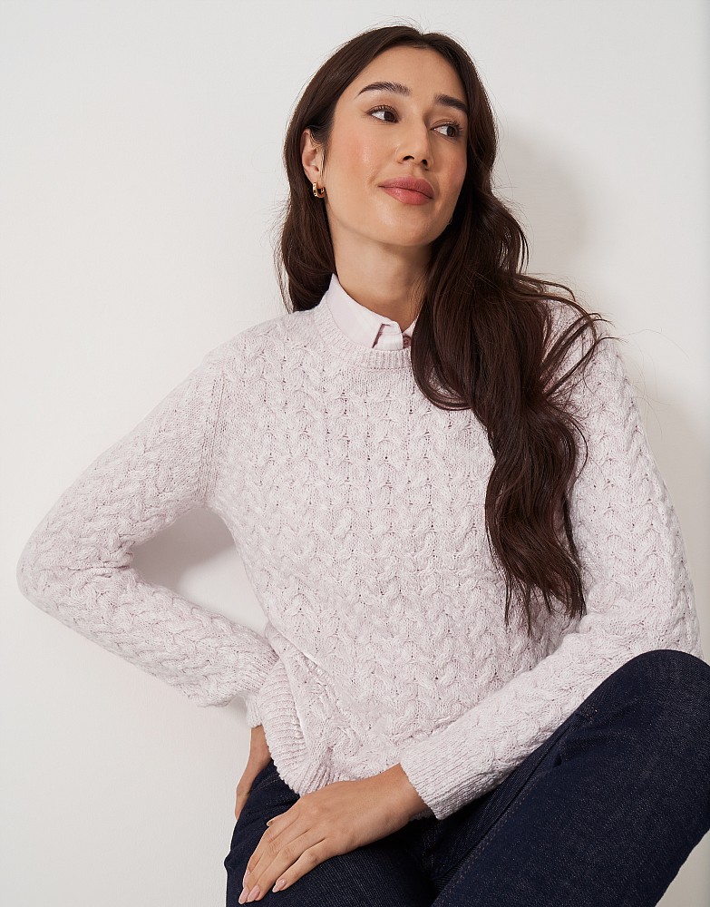 Twist Yarn Cable Knit Wool Blend Jumper in Light Pink