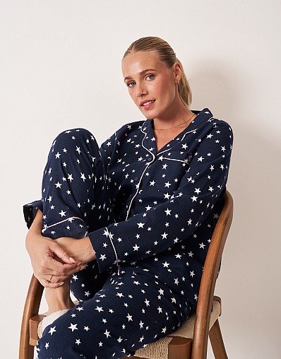 Cotton-Flannel PJ Set in Navy & Pink Star Print