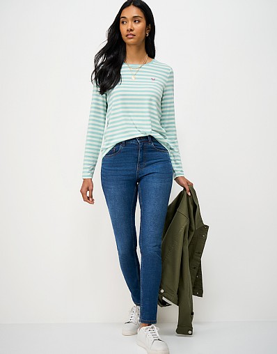 Super Soft Stripe Crew Neck Top in Green Stripe