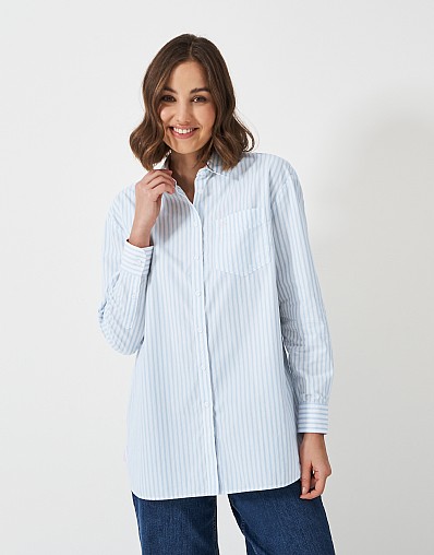 Boyfriend Poplin Shirt in Blue and White Stripes