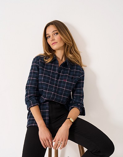 A relaxed-fit cotton flannel shirt. This long-sleeve design features a chest pocket, a stylish check pattern, and is finished with our crossed oars embroidered on the pocket. Perfect to style with dark denim.