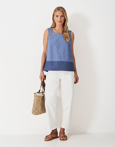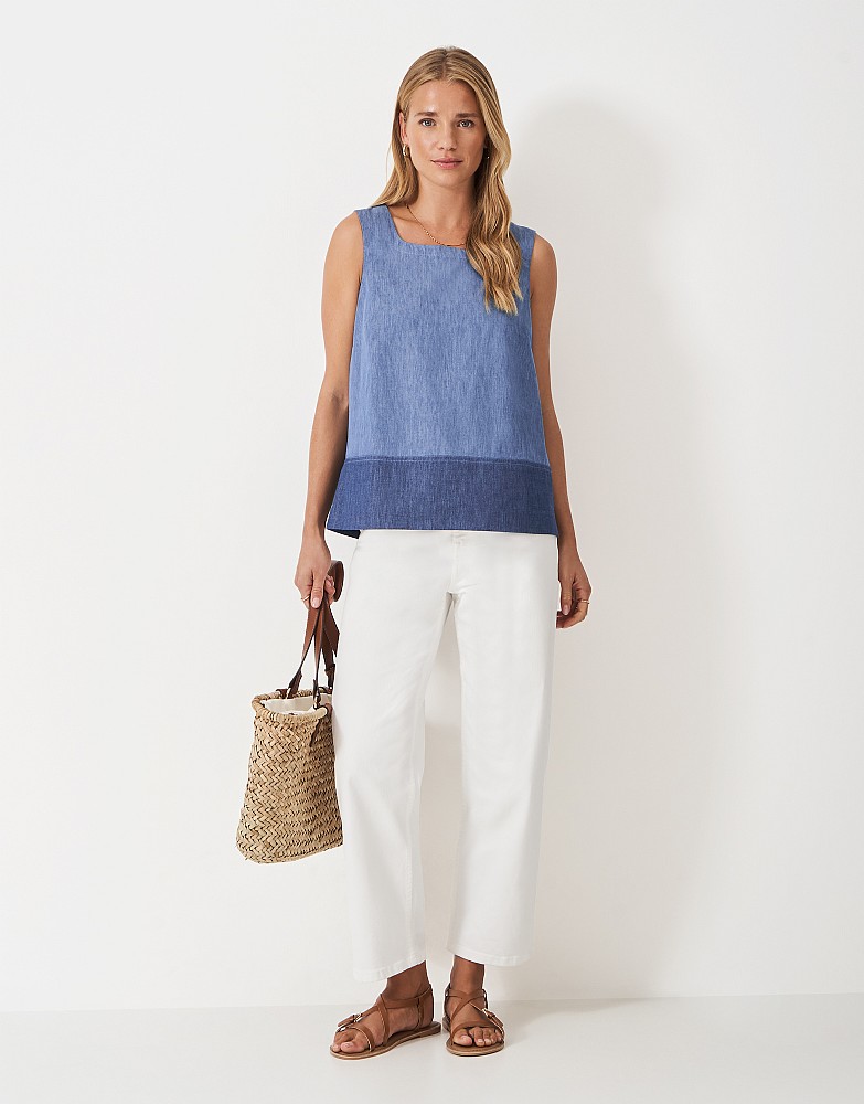 Introducing our Demi shell top. Designed with contrasting denim, this sleeveless number features a flattering square neckline and comfy wide straps. Pair it with your favourite jeans for a double-denim look, or wear with white for an effortless yet sophisticated outfit.