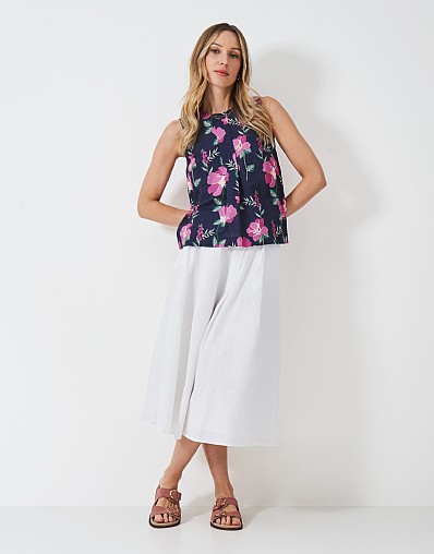 Estelle Linen Blend Shell Top in Navy Pink Floral