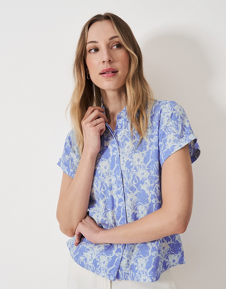 Short Sleeve Linen Blend Shirt in Blue Floral