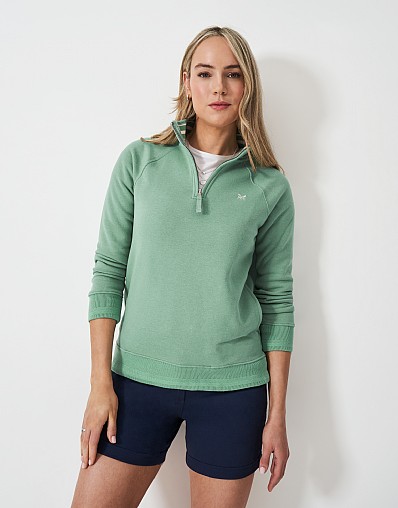 Cotton Blend Half Zip Sweatshirt in Sea Green